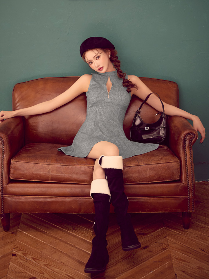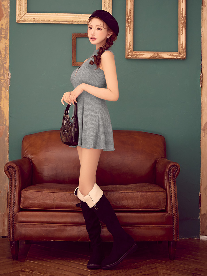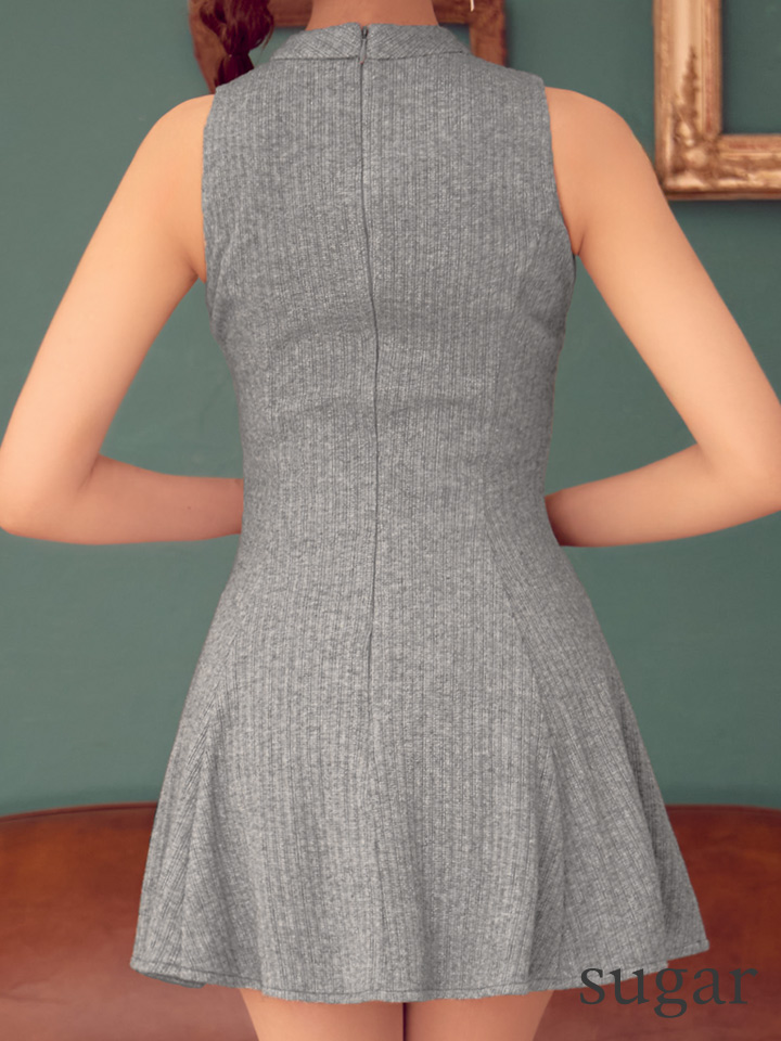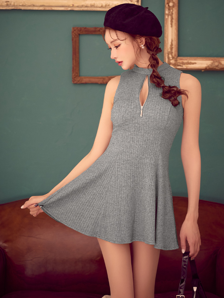 XSサイズあり【Glossy/グロッシー】ラメニット/ ハイネック/ ノースリーブ/ フレア/ ミニドレス/ キャバドレス[OF08] [GL4622-GY-S251114]