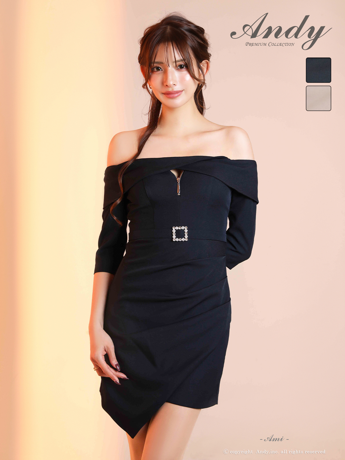 XSサイズあり【ANDY/アンディ】 タイト/ バストジップ/ タック/ アシメスカート/ ストレッチ/ 無地/ オフショルデザイン/ ミニドレス/ キャバドレス[OF05] [ON3027-BE-2511]
