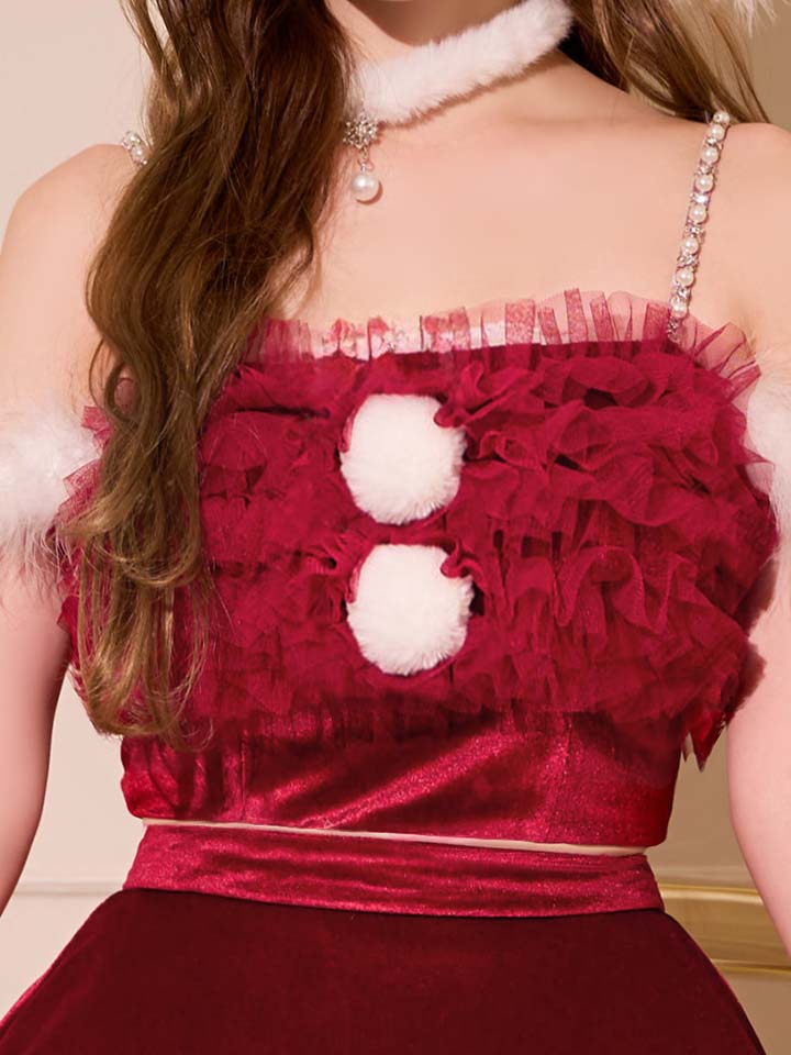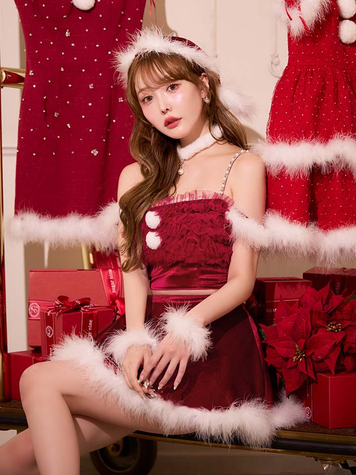 - > 【即日発送】【送料無料!】【サンタ】チュールフリルオフショルセットアップサンタコスプレ【コスプレ6点セット】【XS-Lサイズ/2カラー】[HC03]
