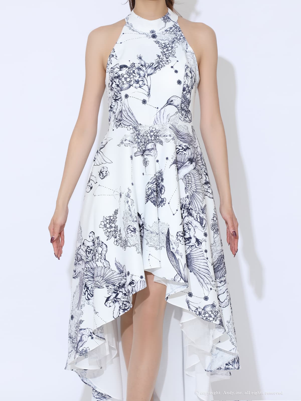 - > XSサイズあり【ANDY/アンディ】テールカット/ バックオープン/ パニエ付き/ アメスリ/ クラシカルプリント/ シフォン/ フレア/ ミディアムドレス/ ワンピース/ キャバドレス[OF05]