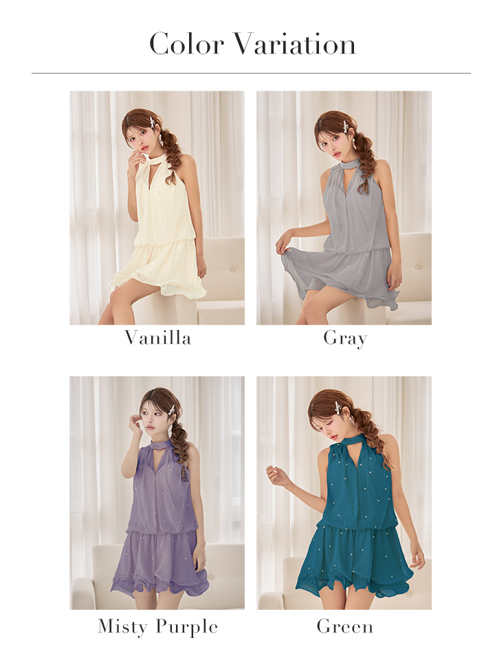 全体に散りばめられたパールが華やかさをプラスし、シフォンの程よい透け感でセクシーさも◎