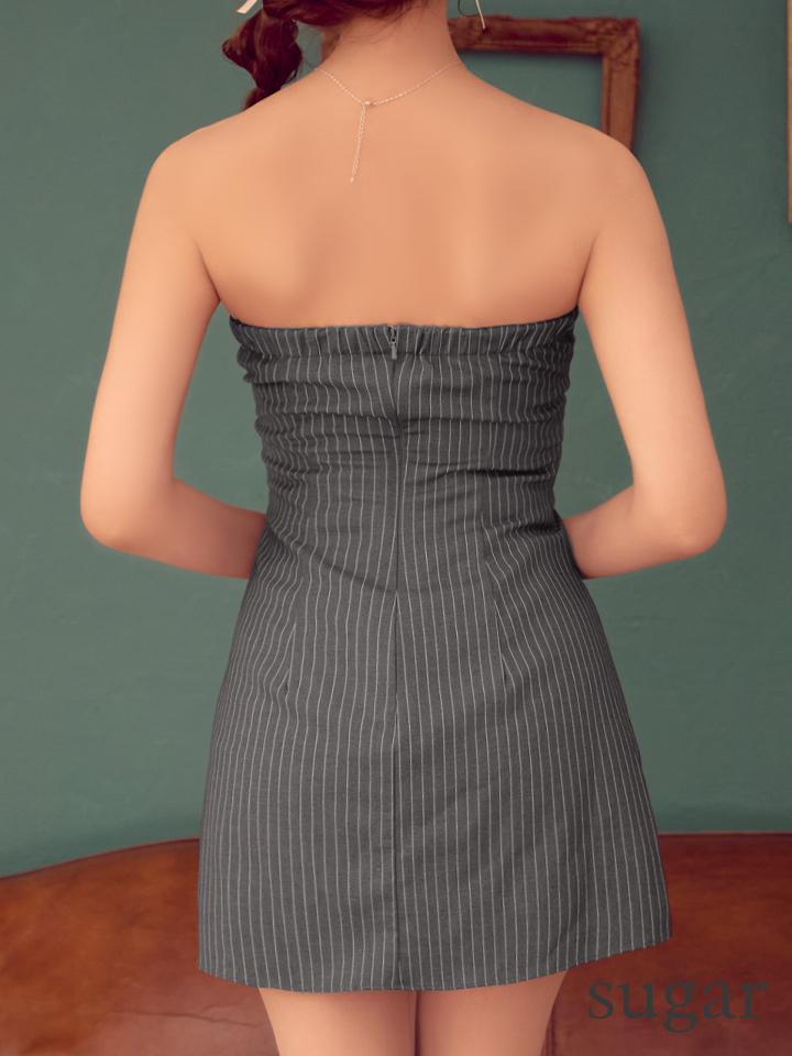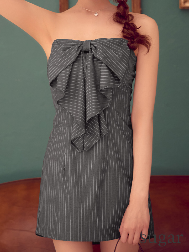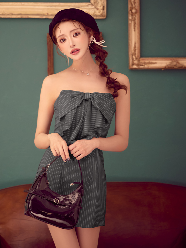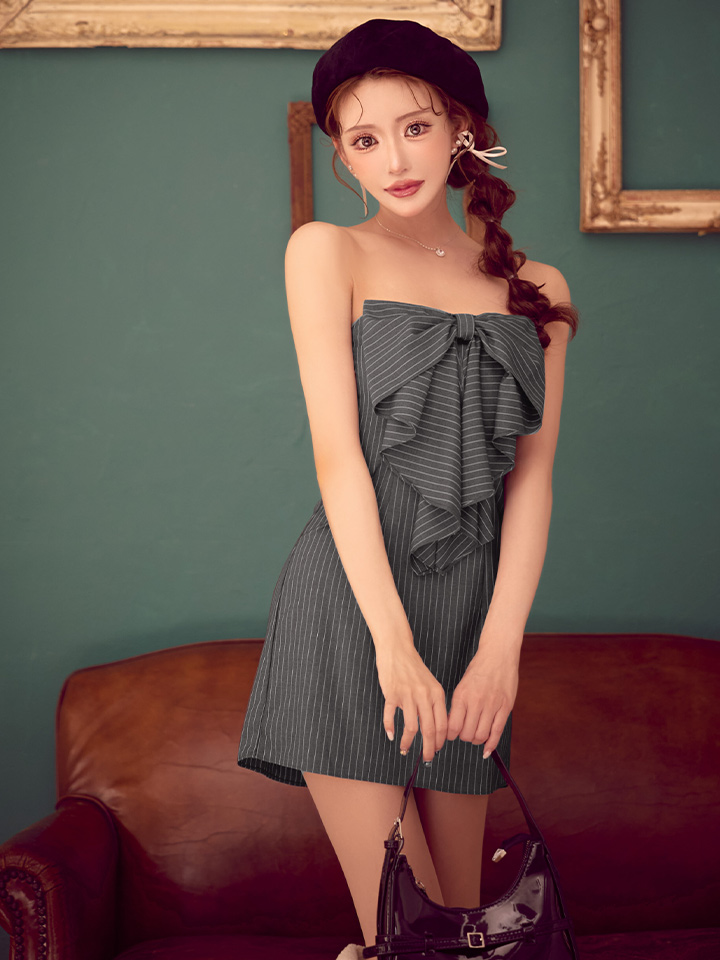 XSサイズあり【ANGEL R/エンジェルアール】ベアトップ/ ビックリボン/ ストライプ/ フレア/ マイクロミニドレス/ キャバドレス[OF2] [AR25253-GY-S251114]