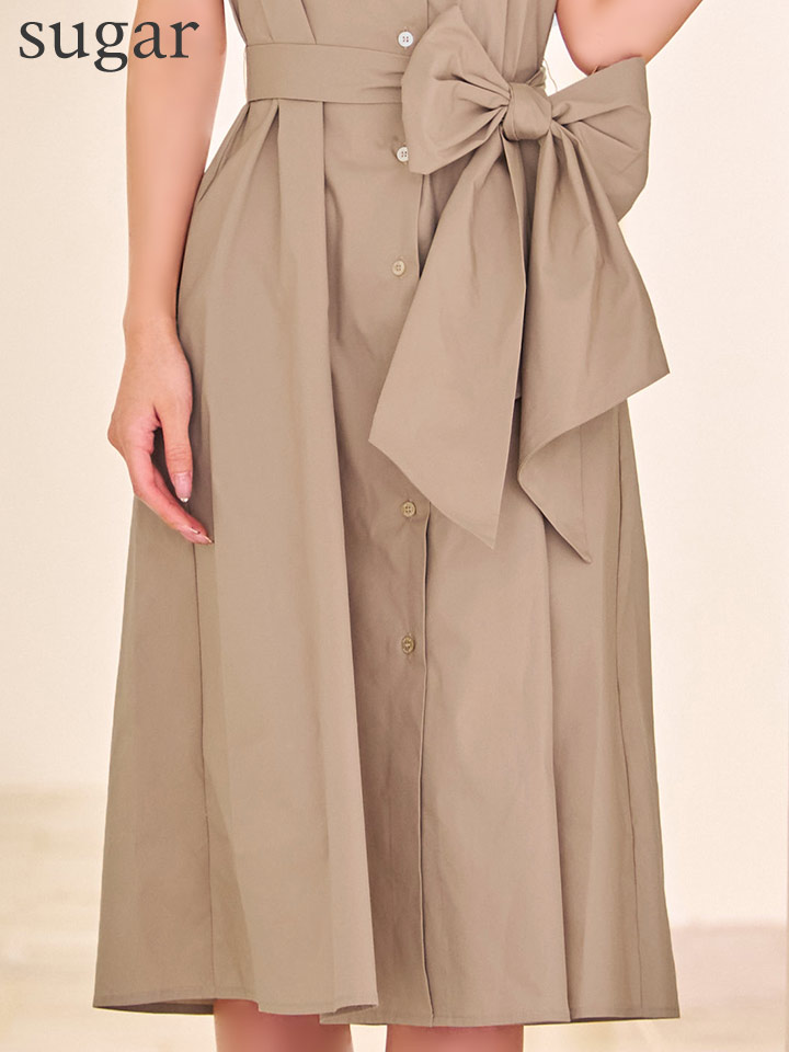 リボンベルトでキュッとウエストを絞ってスタイルアップ◎