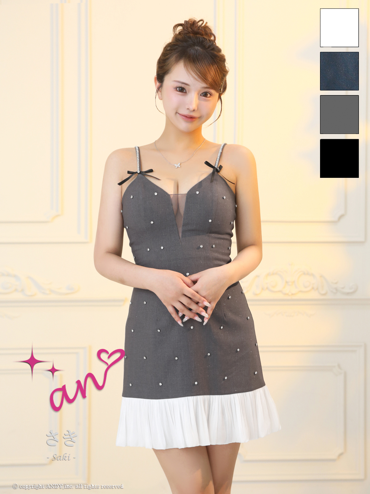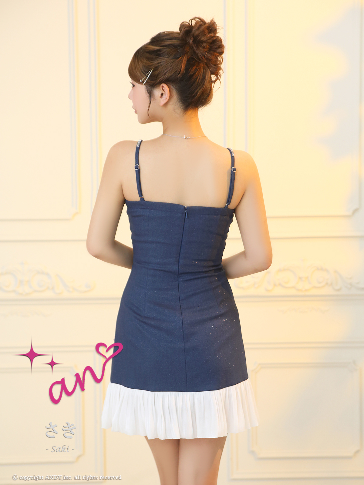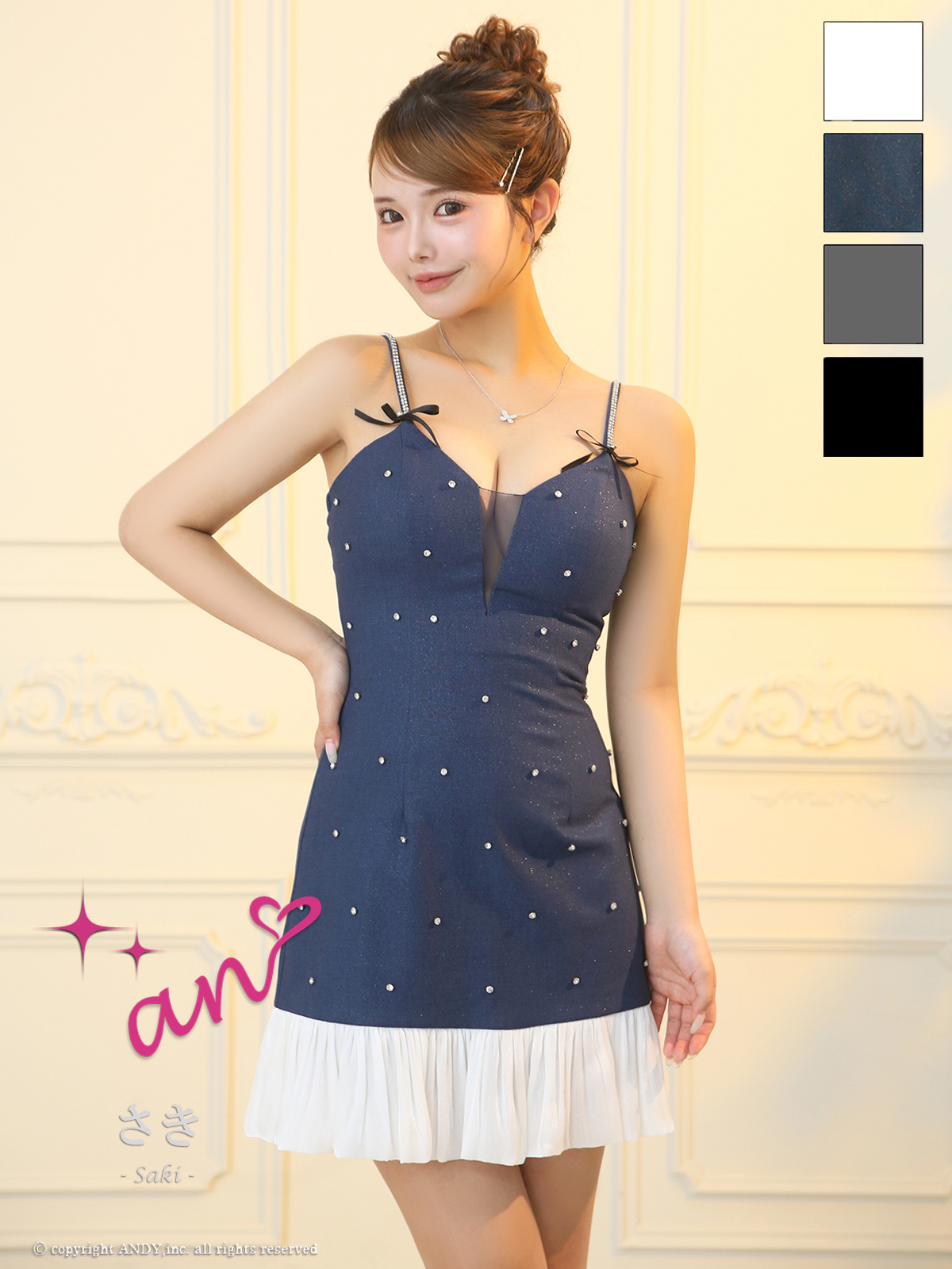 XSサイズあり【an/アン】シアー/ ラメ/ キャミ/ リボンモチーフ/ ビジュー/ フレア/ ミニドレス/ キャバドレス[OF05] [AOC3999-indigo-2511]