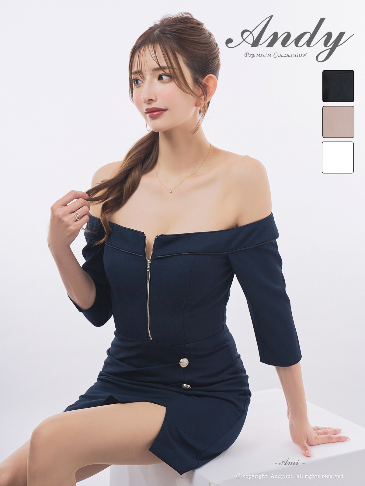 XSサイズあり【ANDY/アンディ】フロントジッパー/ ジッパー/ スリット/ オフショル/ タイト/ ミニドレス/ キャバドレス[OF05] [ON3020-NV-2511]