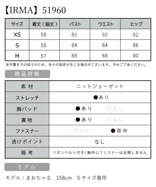 B:80 / W:60 / H:82 [着丈](脇下)約55cm |