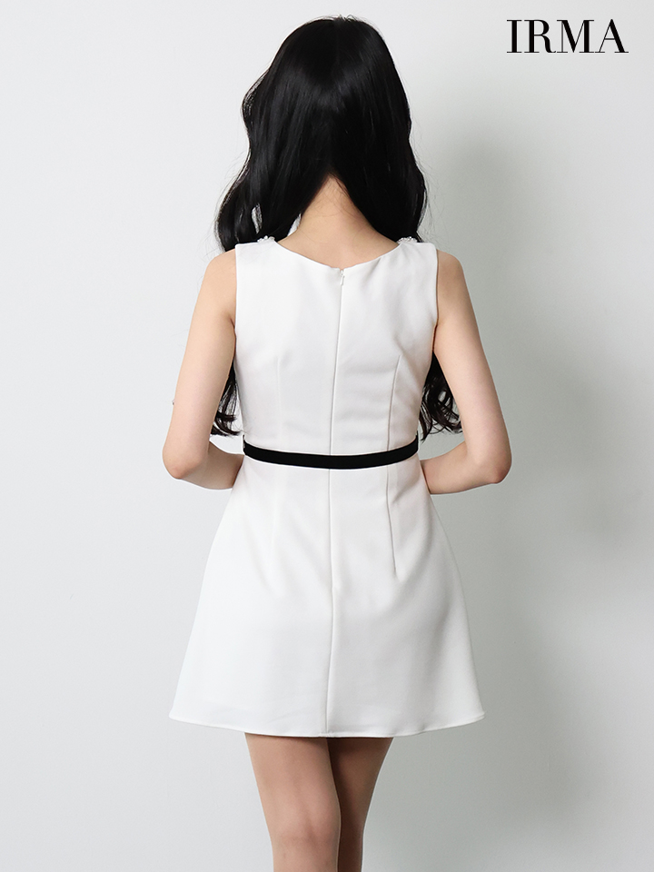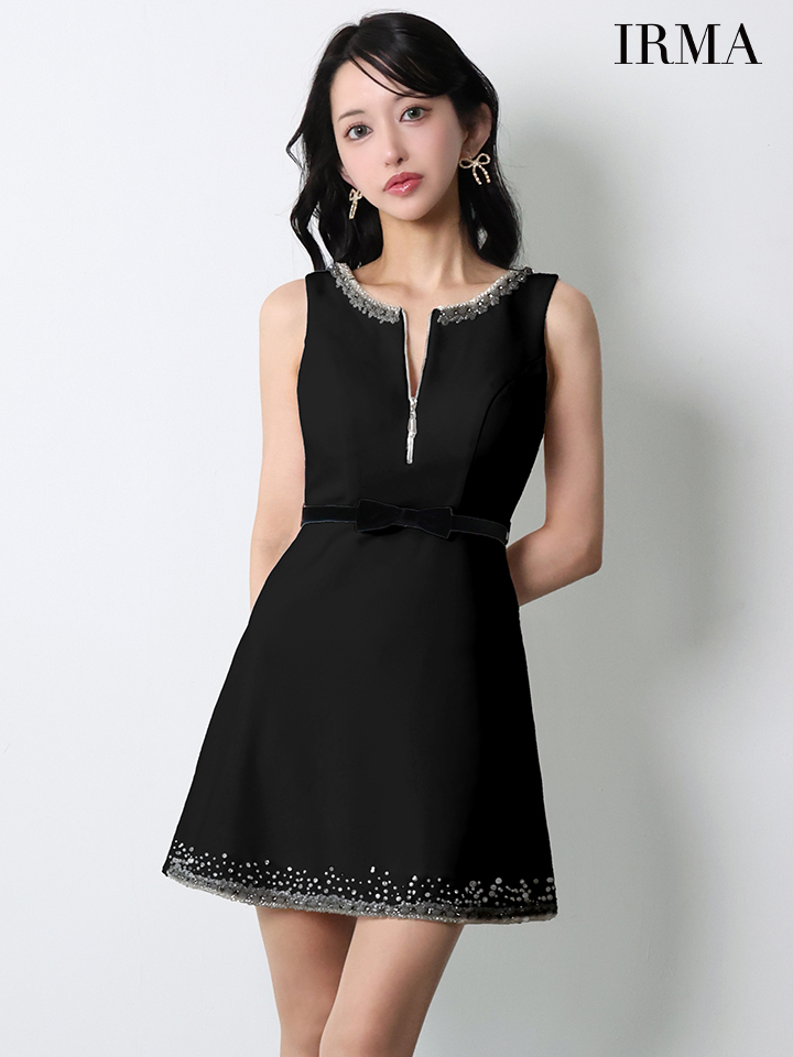 XSサイズあり【IRMA/イルマ】ビーズ刺繍/ リボンベルト/ ノースリーブ/ Aライン/ フレア/ ワンピース/ ミニドレス/ キャバドレス[OF2A] [51960-IR-B-2511]