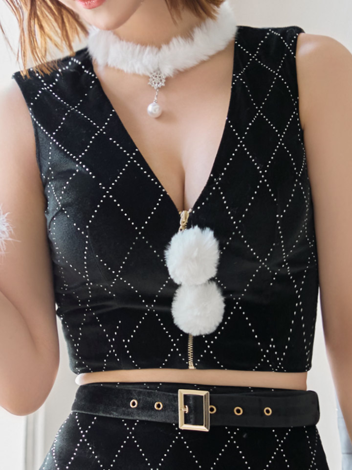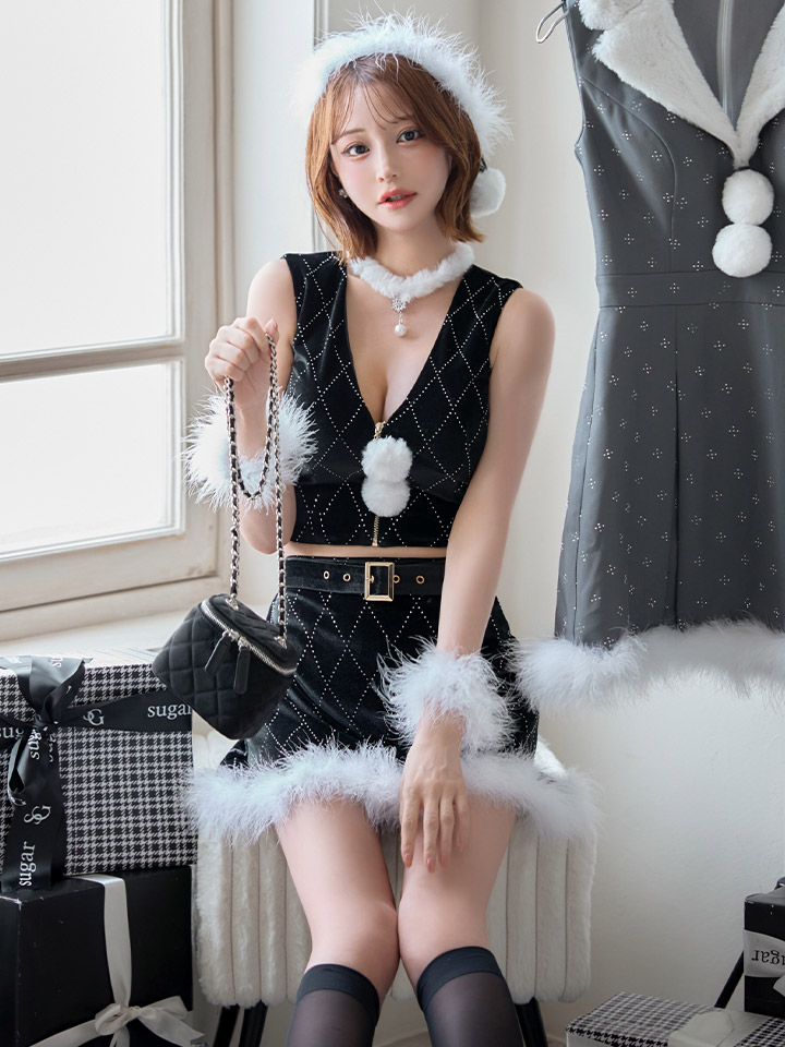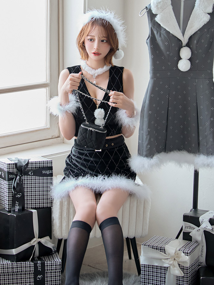 - > 【即日発送】【サンタ】ダイヤ柄ビジューベルト付きサンタコスプレ【コスプレ7点セット】【XS-Lサイズ/2カラー】[HC03]
