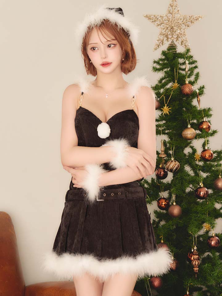 ベルト ベロア ワンピース ファー ブラウン