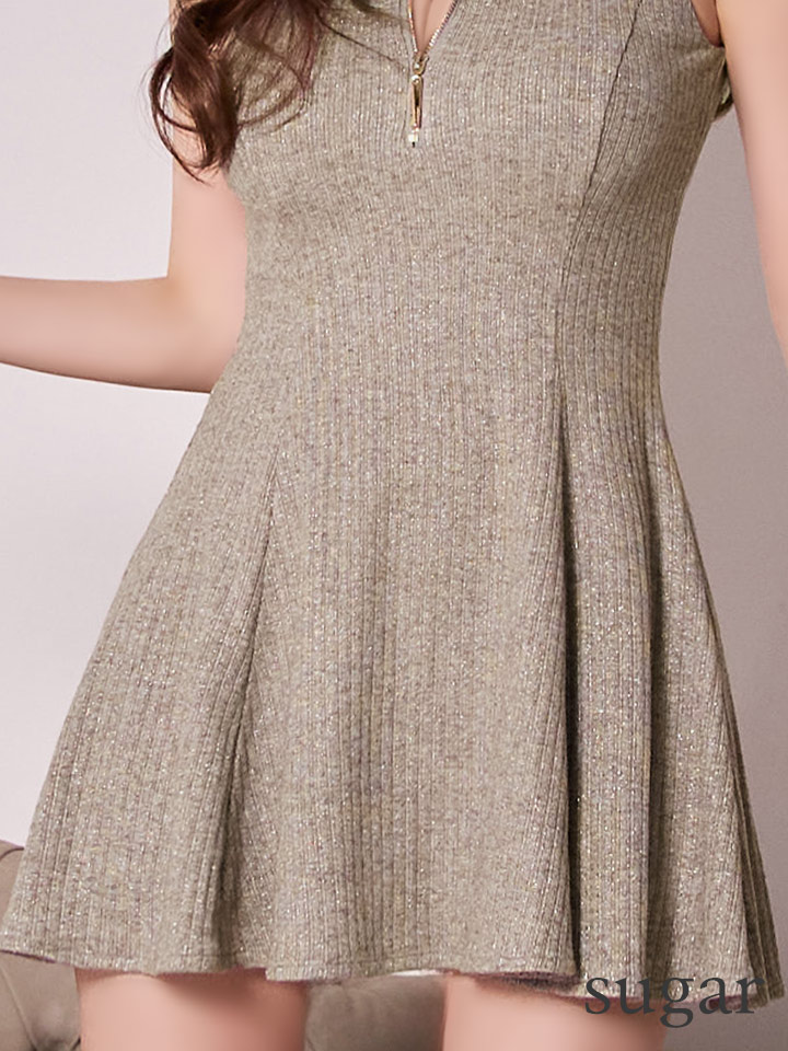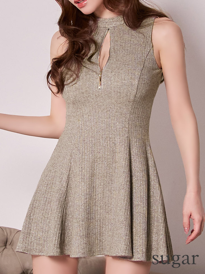 - > XSサイズあり【Glossy/グロッシー】ラメニット/ ハイネック/ ノースリーブ/ フレア/ ミニドレス/ キャバドレス[OF08]