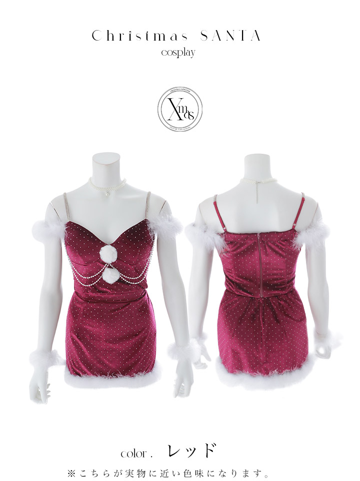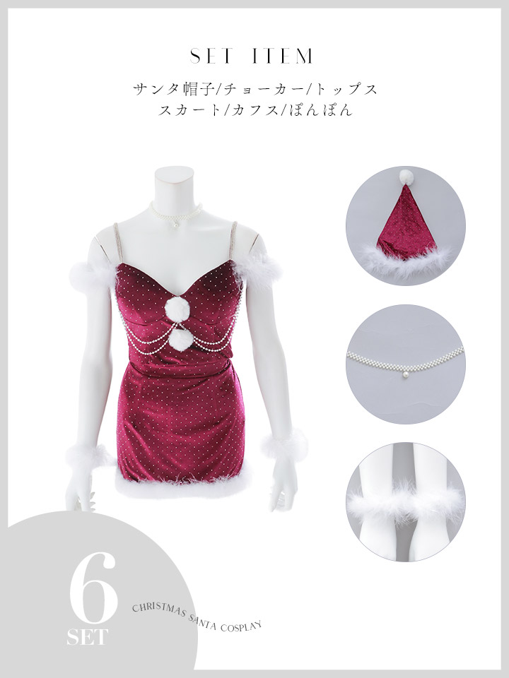- > 【即日発送】【サンタ】 ベロアストーンビジューチェーンセットアップサンタコスプレ【コスプレ6点セット】【XS-Mサイズ/2カラー】[HC03]