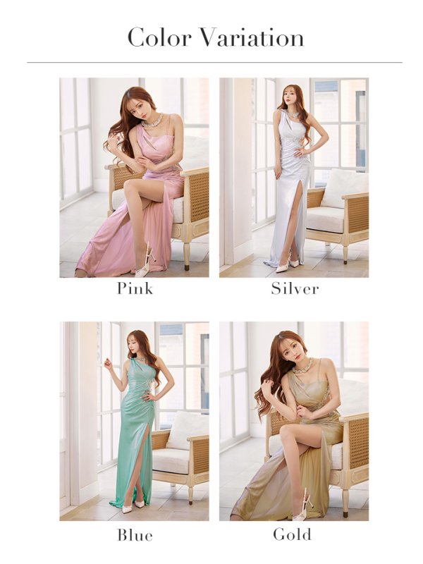 【Lip line/リップライン】アシンメトリーショルダー/ ラメ/ バストカット/ ウエストシアー/ ビジュー/ スリット/ ロングドレス/ キャバドレス long[HC03] [A-0340-SV-S2511]