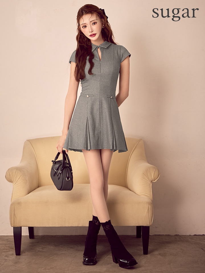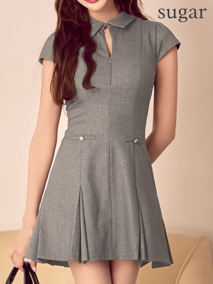 【予約商品/11月中旬発送予定】XSサイズあり【DEA./ディア】襟/ 袖/ ラメ/ ツイル/ フレア/ ミニドレス/ キャバドレス[OF08] [DE4312-GY-S251119]