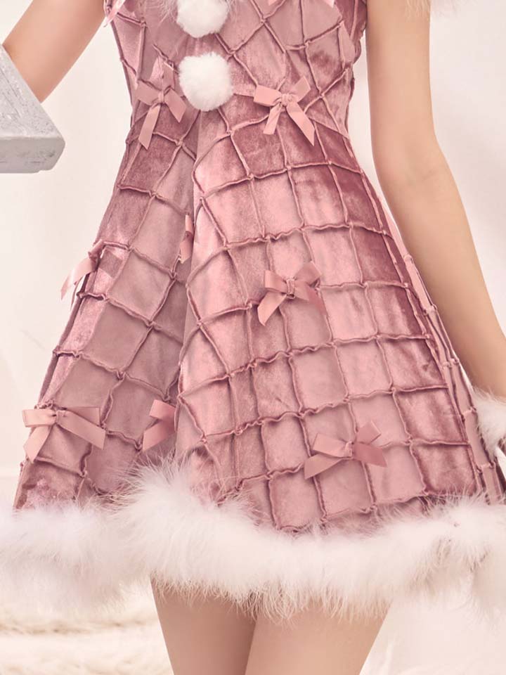- > 【サンタSALE!!】【即日発送!】【サンタコス 4点セット】【XS-XLサイズ/2カラー】リボンモチーフパールショルダーフレアサンタ[OF04]