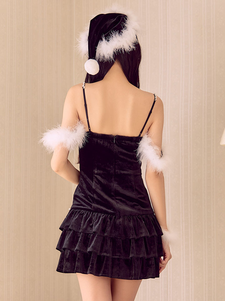 ブラック 黒 スカート ミニスカート フレアスカート 胸盛り 肩出し ファー