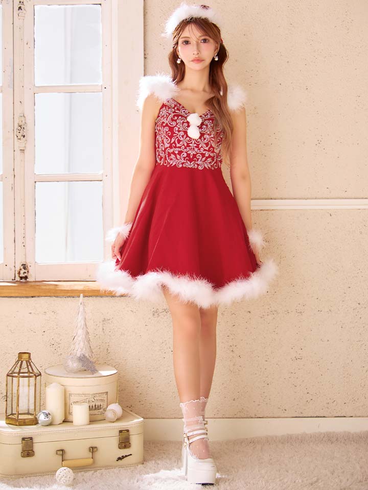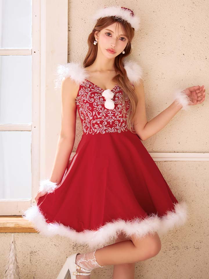 ふわふわのファーとビジューをふんだんに使用した高級ラインのサンタコス♡