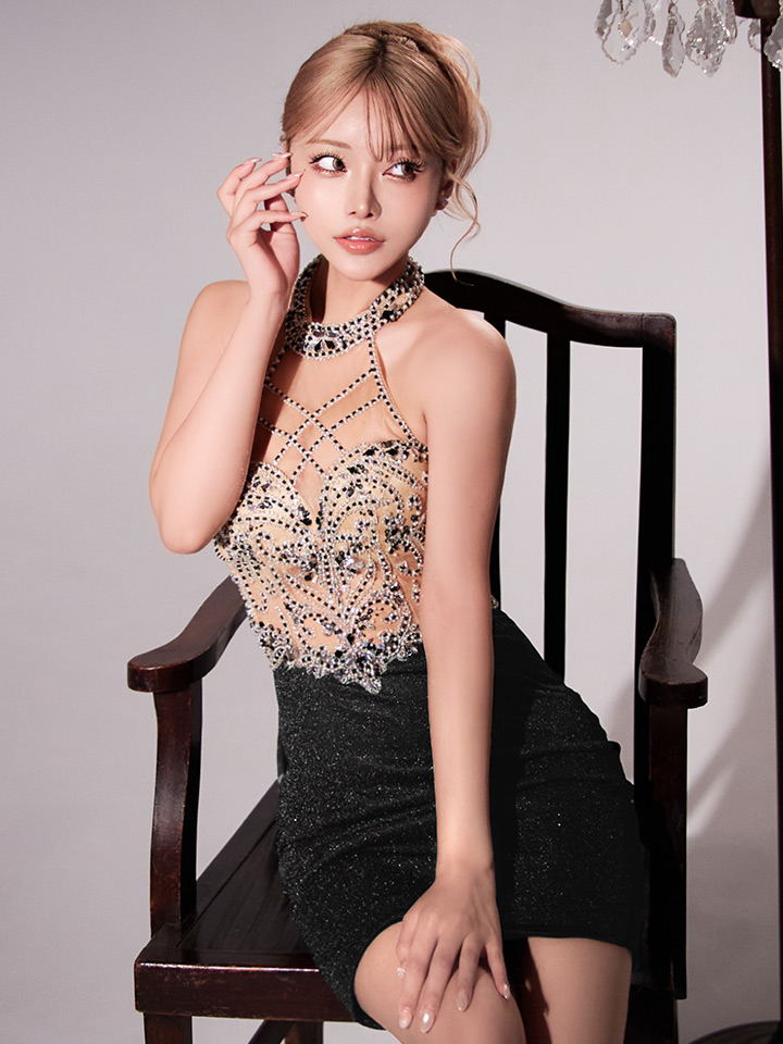 - > XSサイズあり【IRMA/イルマ】ビジュー/ 刺繍/ ホルターネック/ シアー/ ラメ/ ストレッチ/ タイト/ ミニドレス/ キャバドレス[OF2A]