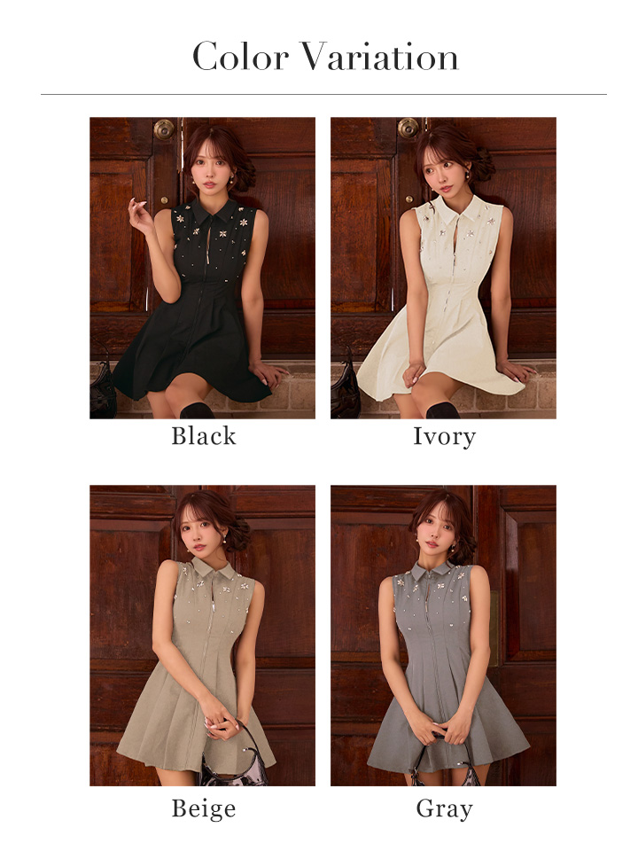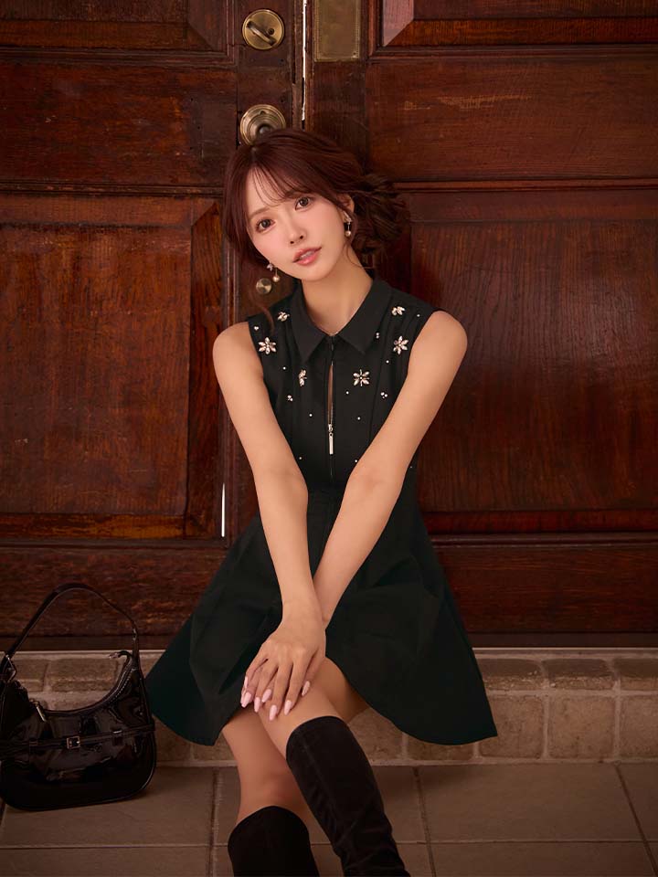 XSサイズあり【ROBE de FLEURS/ローブドフルール】襟付き/ ノースリーブ/ フレア/ ミニドレス/ キャバドレス[OF08] [FM4156-B-S251125]