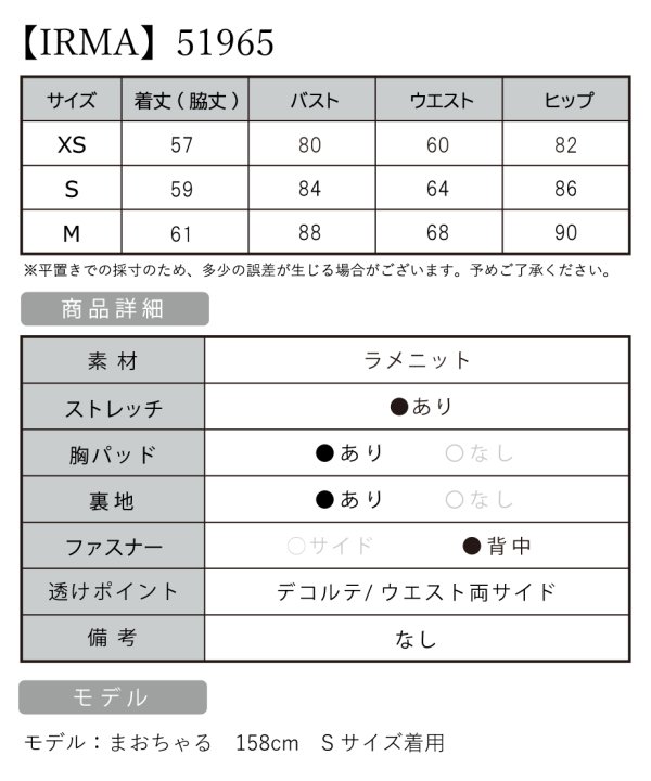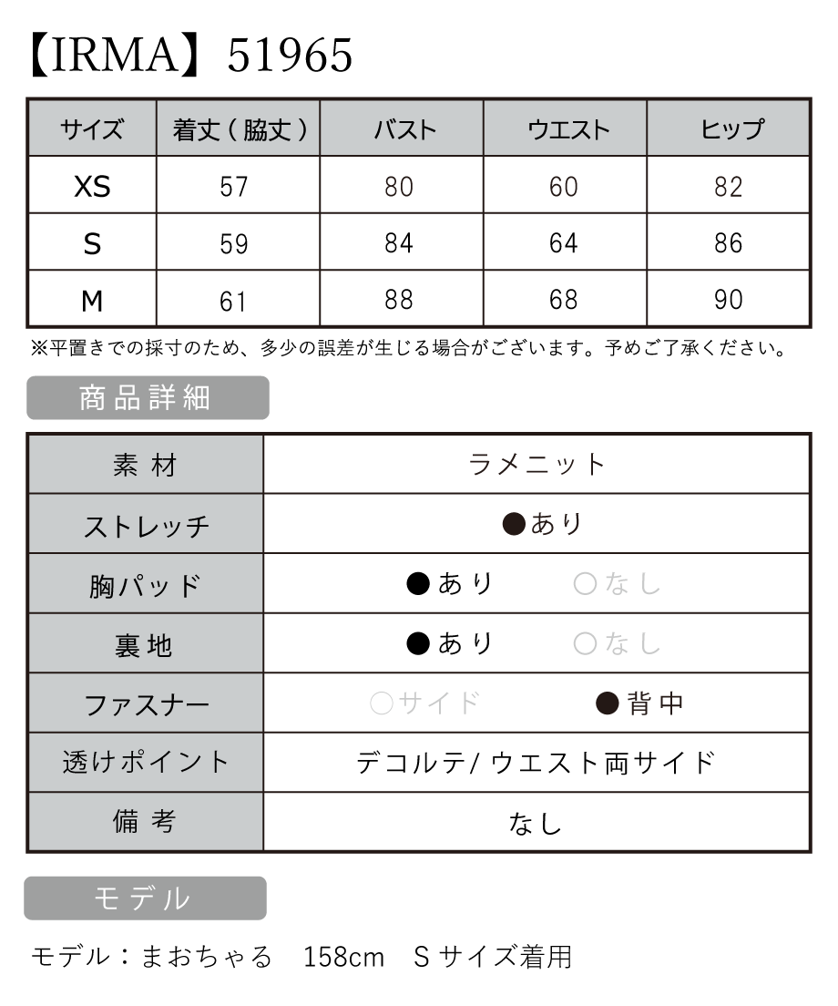 B:88 / W:68 / H:90 [着丈](脇下)約61cm |
