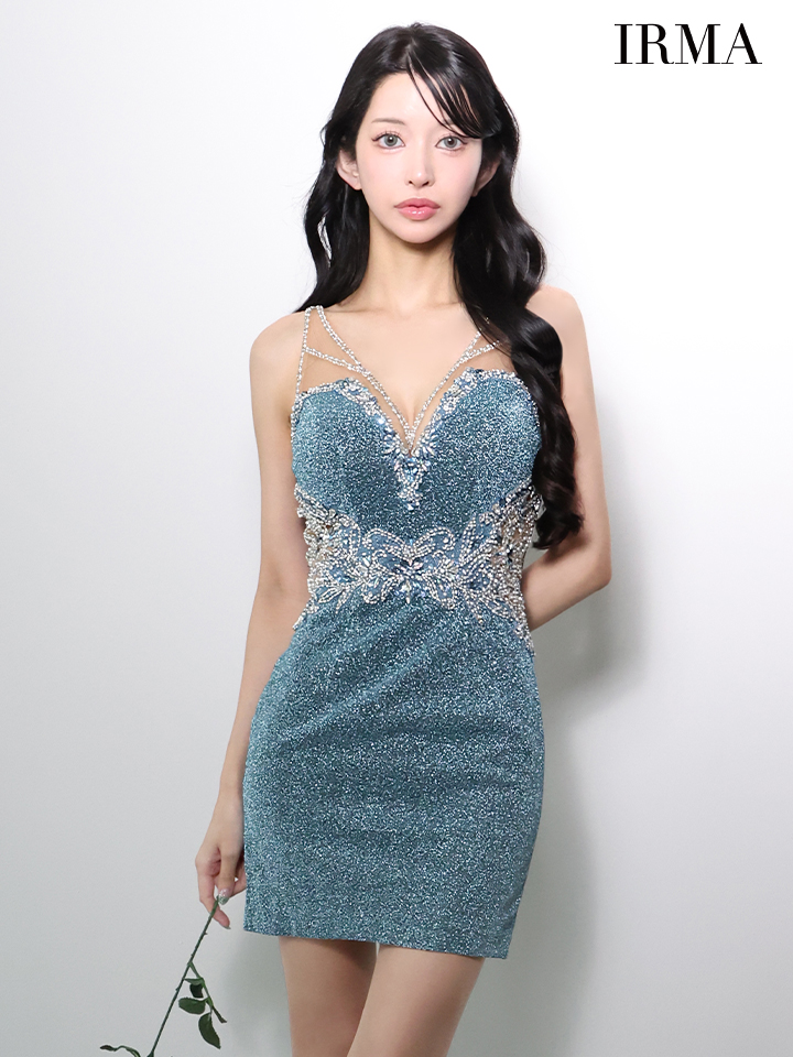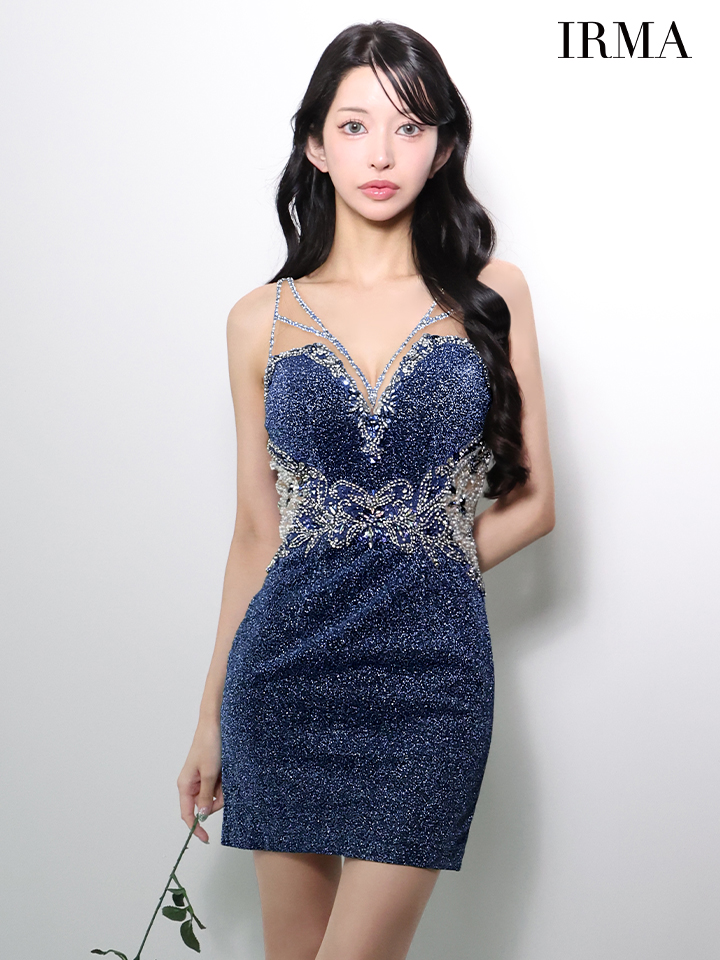 XSサイズあり【IRMA/イルマ】ビジュー/ ビーズ刺繍/ ラメニット/ シアー/ ノースリーブ/ ストレッチ/ タイト/ ミニドレス/ キャバドレス[OF2A]【一部予約商品/4月上旬発送予定】 [51965-IR-DKBL-S251126]