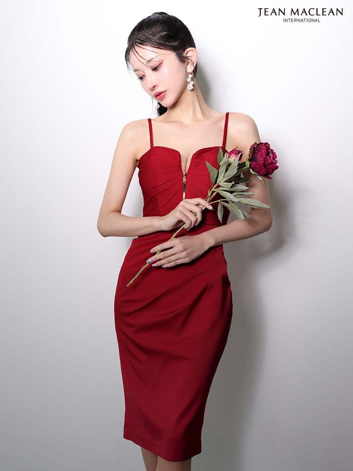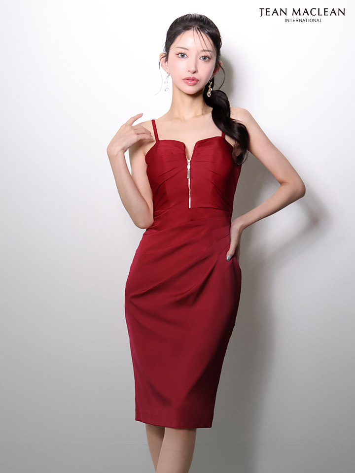 - > 【JEAN MACLEAN/ジャンマクレーン】シンプル/ サテン/ キャミ/ フロントジップ/ タック/ タイト/ ひざ丈/ ミディアムドレス/ キャバドレス[OF2A]