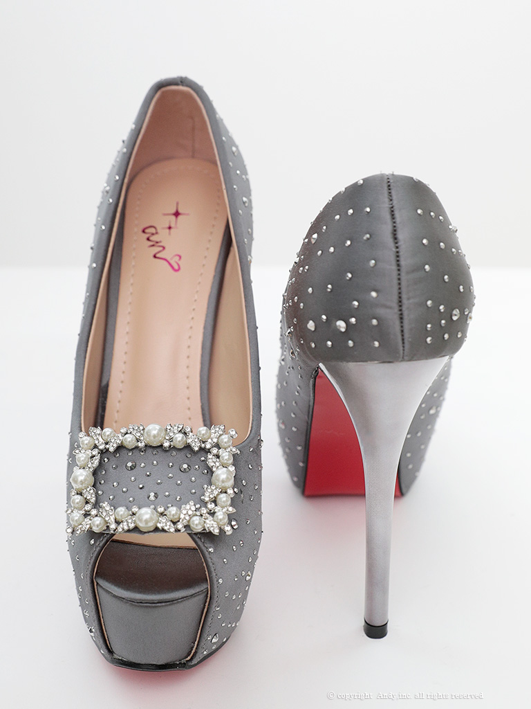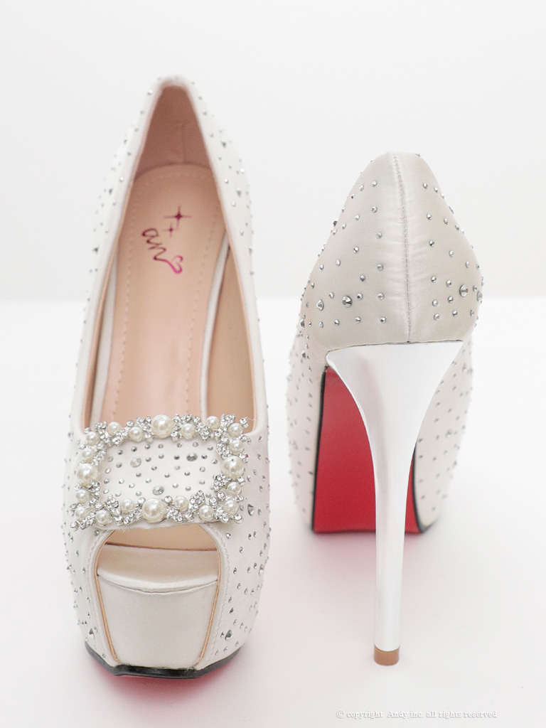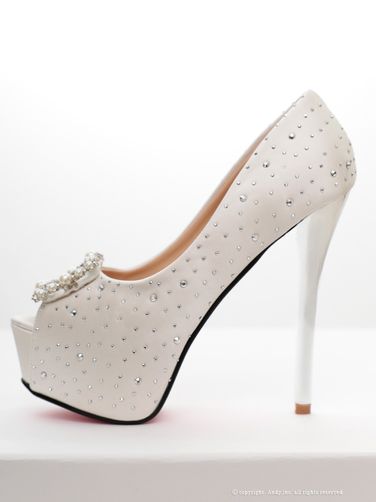【an】4color/ 14cmヒール/ パール/ ラインストーン/ ビジュー/ スクエアモチーフ/ ハイヒール/ ピンヒール/ オープントゥパンプス [OF02] [AOC-SH055-W-2511]