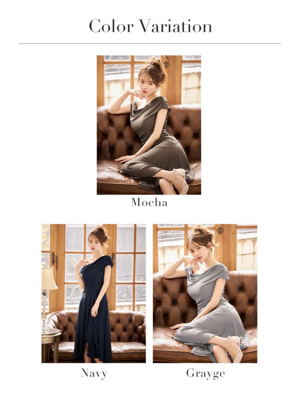 流れるようなドレープと前後差のある裾ラインが、歩くたびに美しく揺れ動きます。