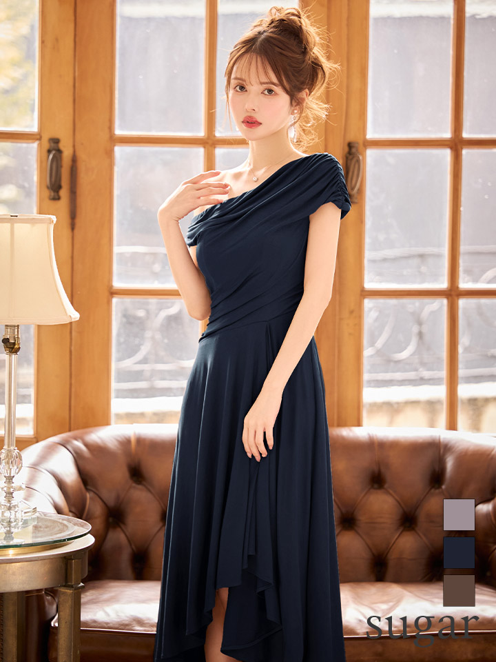 - > XSサイズあり【Veautt/ヴュート】【OF05】ワンショルダー/ アシンメトリー/ フレア/ ミディアムドレス/ キャバドレス