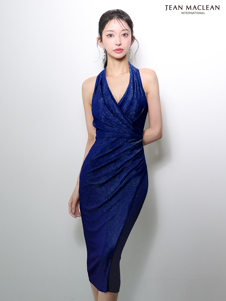 - > Lサイズあり【JEAN MACLEAN/ジャンマクレーン】ホルターネック/ ラメニット/ タック/ ひざ丈/ ストレッチ/ タイト/ ミディアムドレス/ キャバドレス[OF2A]