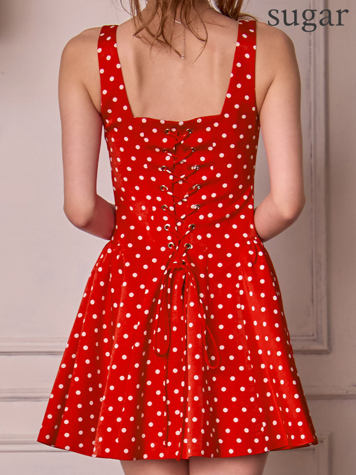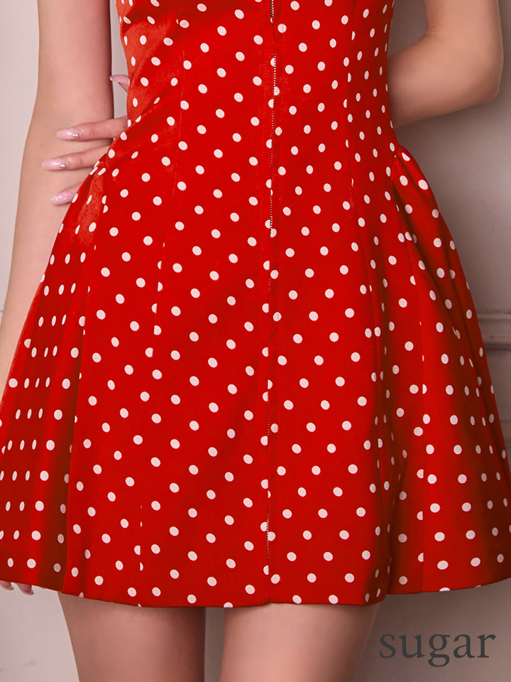 XS-Lサイズあり【ERUKEI エルケイ】ドット柄/ フロントジップ/ ノースリーブ/ バックスピンドル/ Aライン/ フレア/ ワンピース/ ミニドレス/ キャバドレス[OF2] [LKE25174-RxW-S251129]