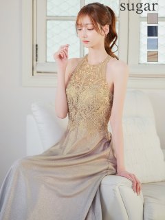 【Lip line/リップライン】ラインストーン/ フラワー刺繍/ ノースリーブ/ バストシアー/ チュール/ フレア/ ロングドレス/ キャバドレス long[HC03] [A-0344-GR-S2511]