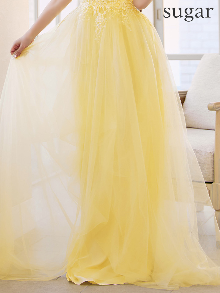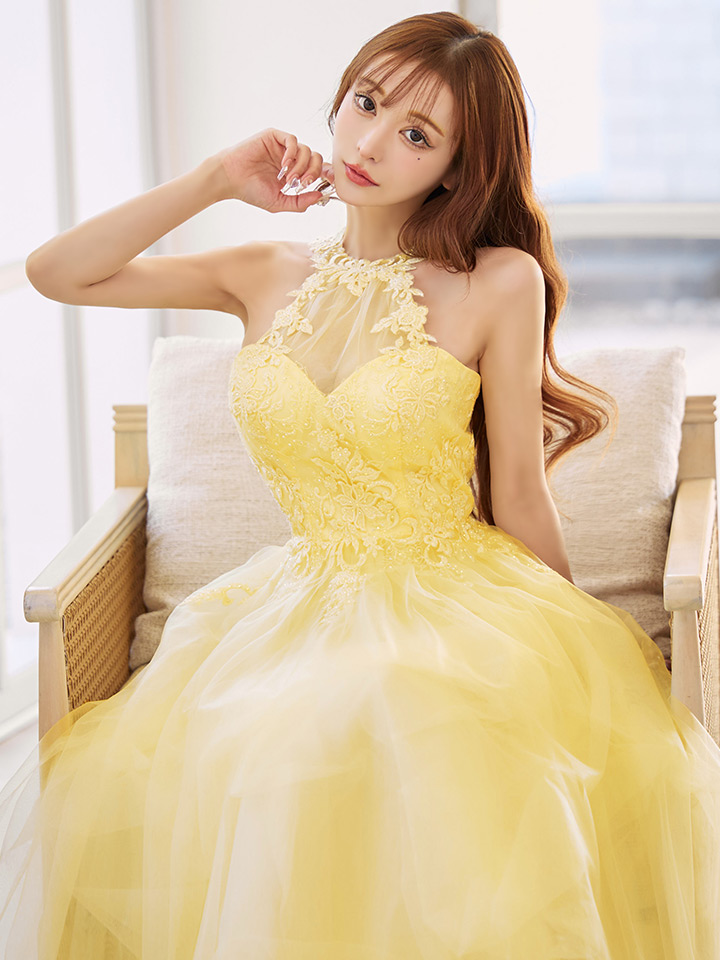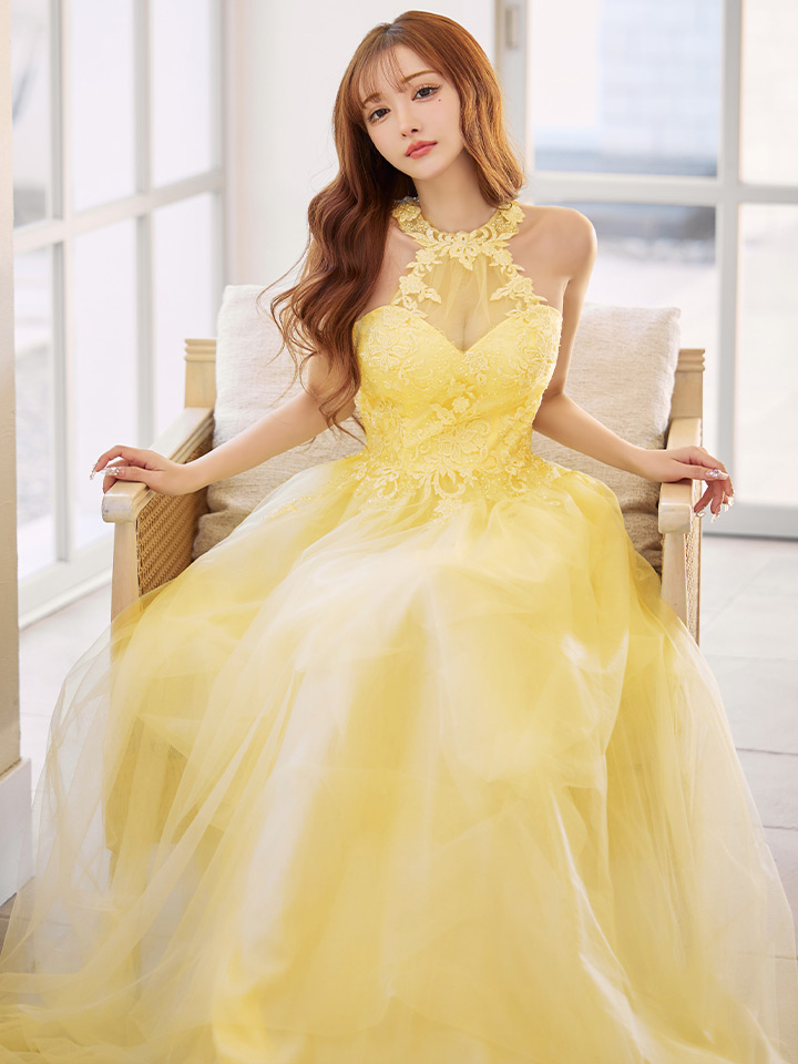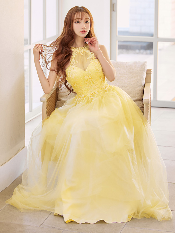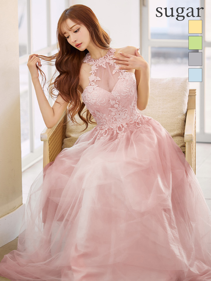 たっぷりのチュールで可憐な雰囲気を纏うフレアロングドレス♡