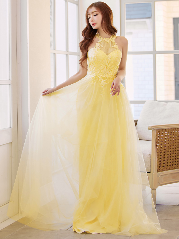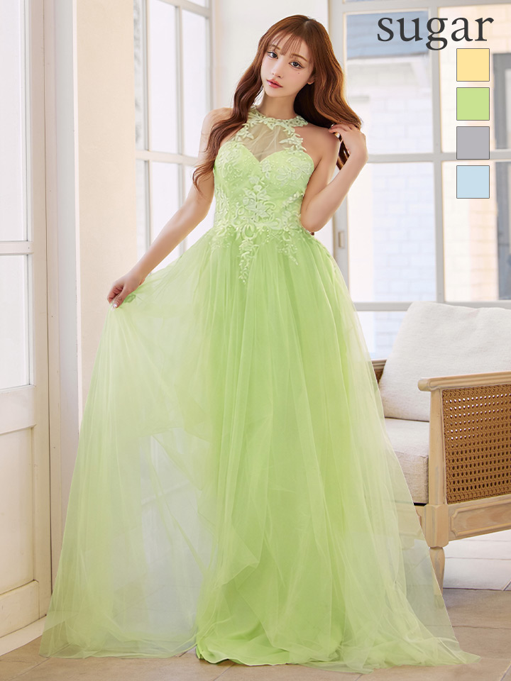 【Lip line/リップライン】ラインストーン/ フラワー刺繍/ ノースリーブ/ バストシアー/ チュール/ フレア/ ロングドレス/ キャバドレス long[HC03] [A-0344-Y-S2511]