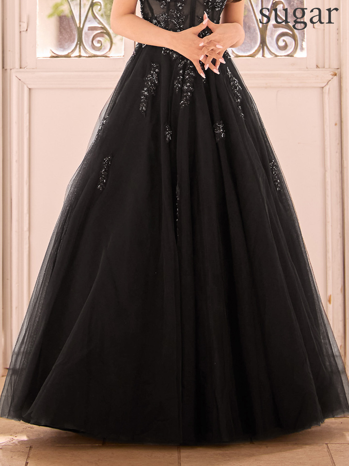 刺繍レースにスパンコールが煌めくプリンセスロングドレス♡