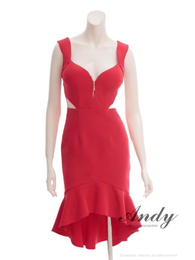 - > 【ANDY/アンディ】フロントジップ/ ウエストカット/ フリル/ タイト/ ミディアムドレス/ キャバドレス[OF05]