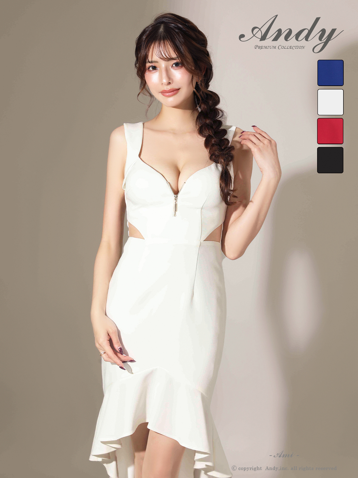 【ANDY/アンディ】フロントジップ/ ウエストカット/ フリル/ タイト/ ミディアムドレス/ キャバドレス[OF05] [ON3029-W-2511]