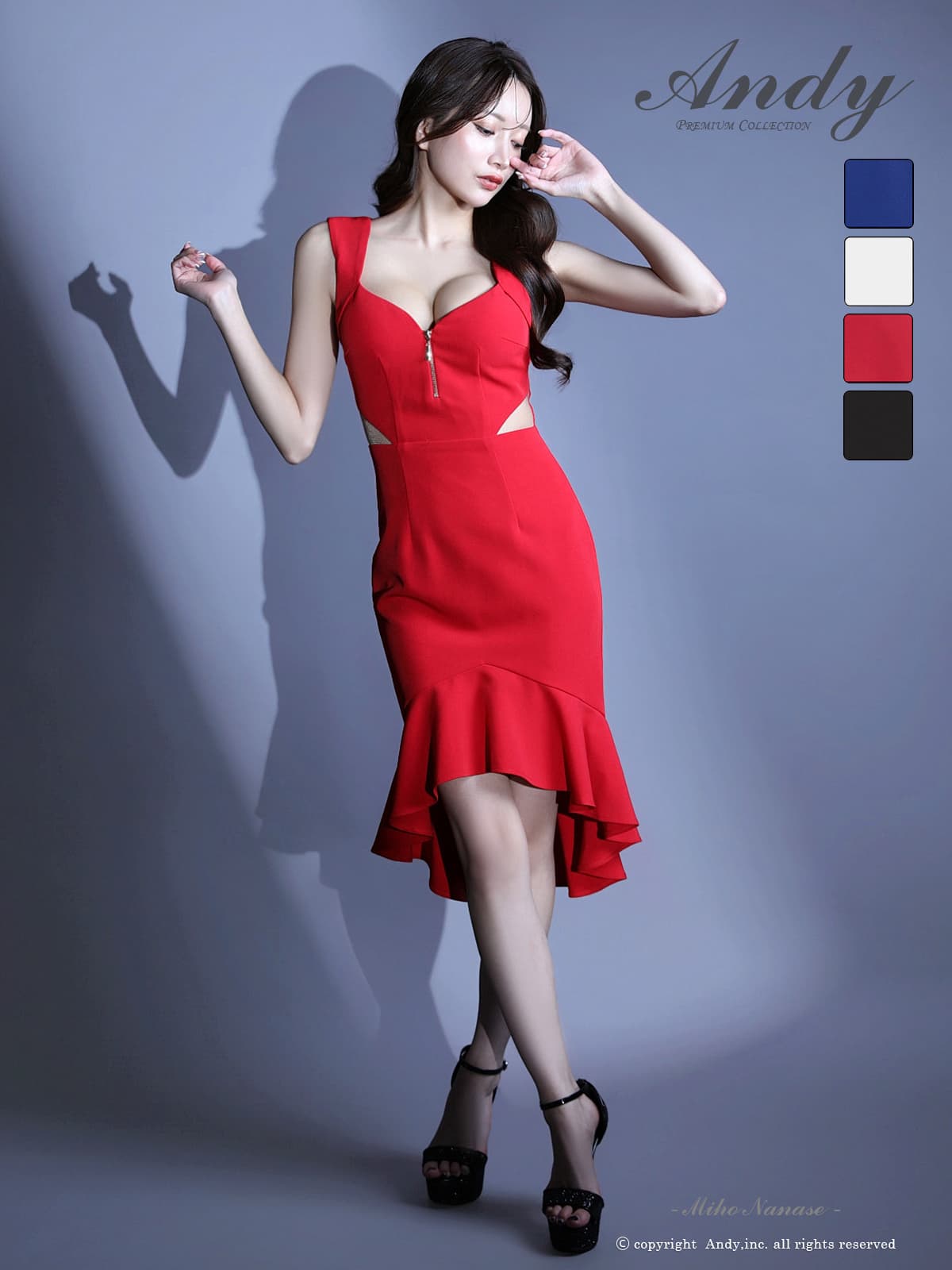 【ANDY/アンディ】フロントジップ/ ウエストカット/ フリル/ タイト/ ミディアムドレス/ キャバドレス[OF05] [ON3029-R-2511]