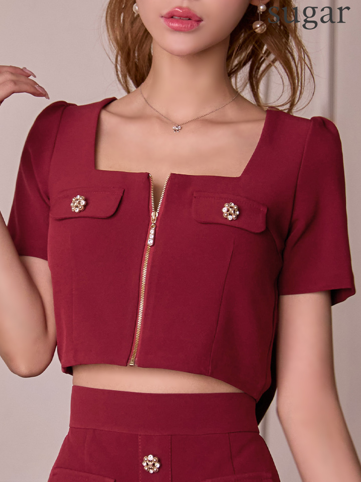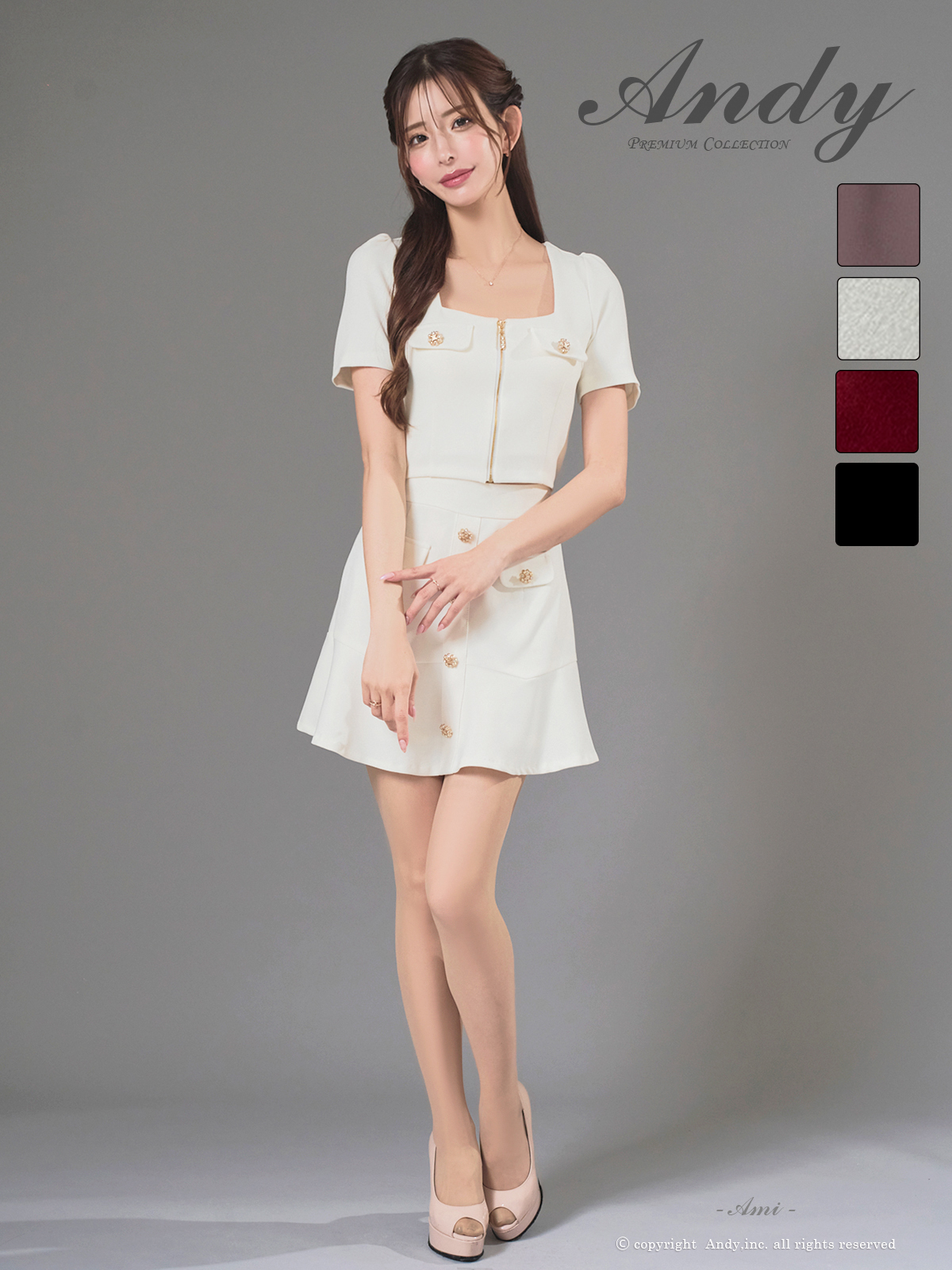 - > XSサイズあり【ANDY/アンディ】ストレッチ/ スクエアネック/ 半袖/ 袖あり/ セットアップ/ ミニドレス/ キャバドレス[OF05]