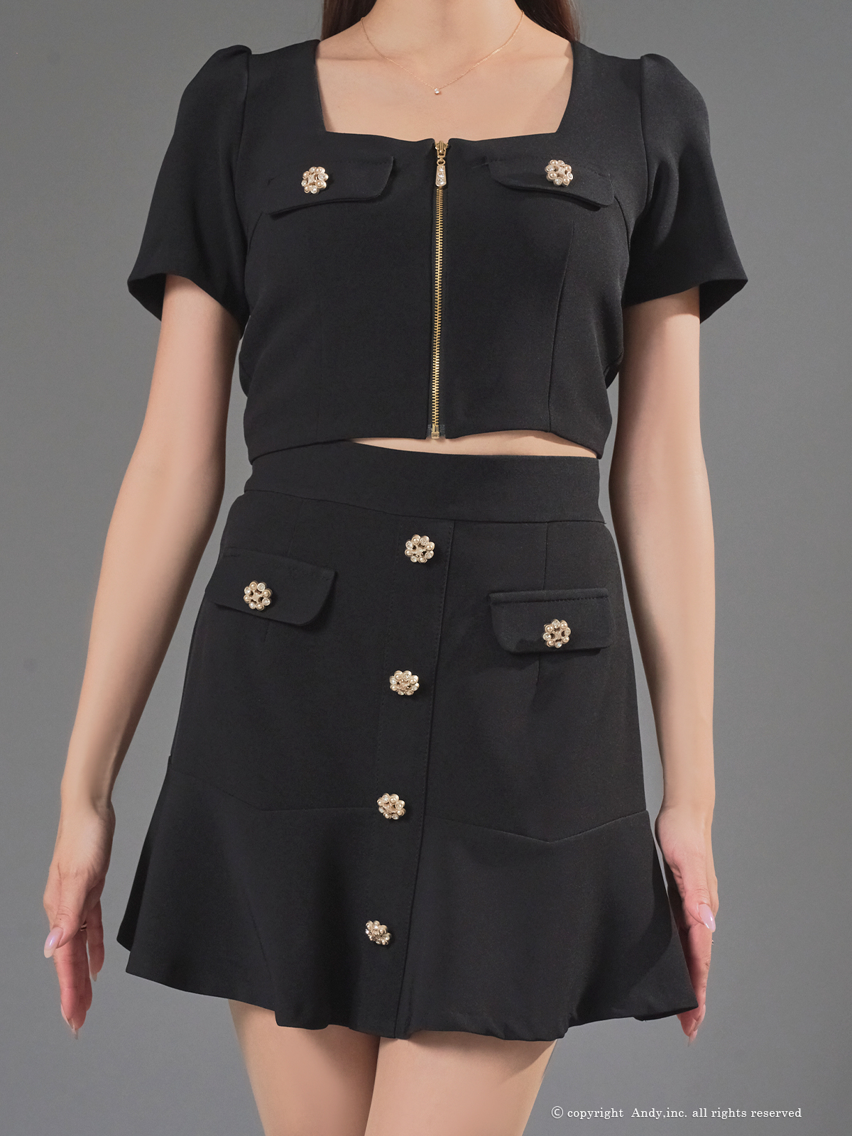 煌めくゴールドボタンが乙女心くすぐるセットアップミニドレス♡