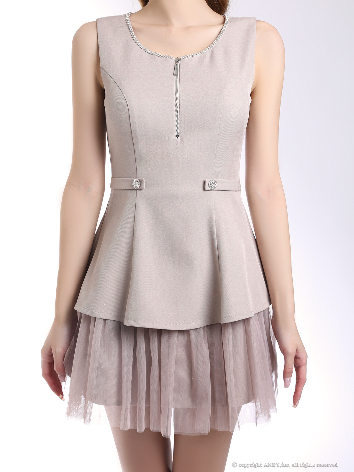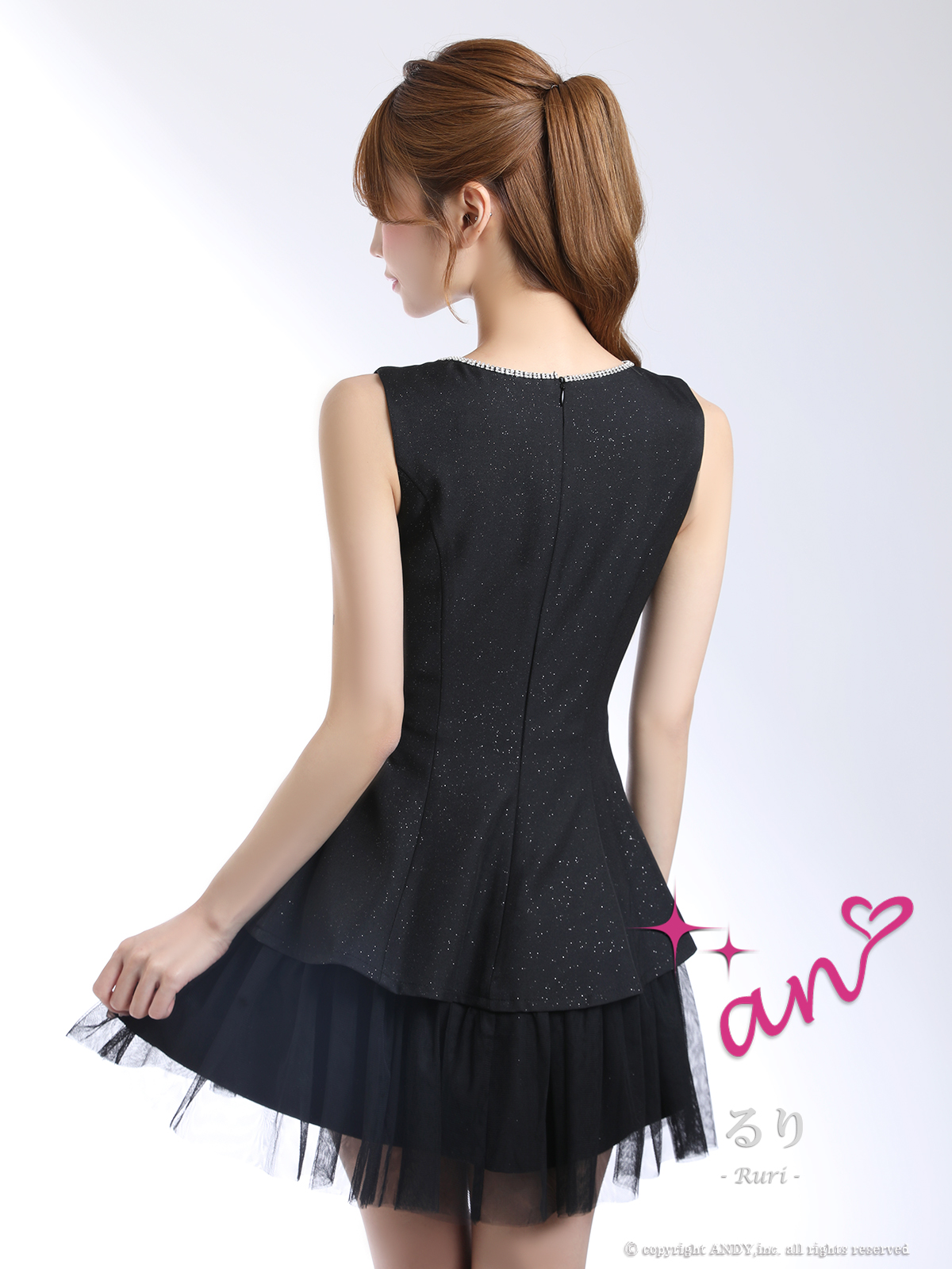 - > XSサイズあり【an /アン】ビジューボタン/ バストジップ/ ノースリーブ/ フリル/ フレア/ ミニドレス/ キャバドレス[OF05]