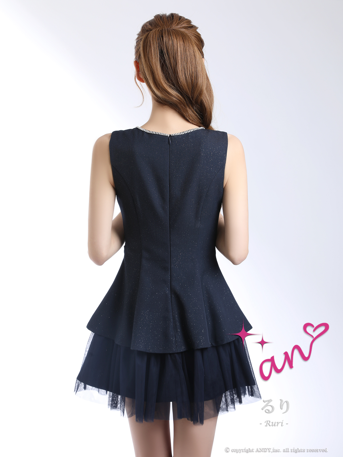 XSサイズあり【an /アン】ビジューボタン/ バストジップ/ ノースリーブ/ フリル/ フレア/ ミニドレス/ キャバドレス[OF05] [AOC4025-NV-2511]
