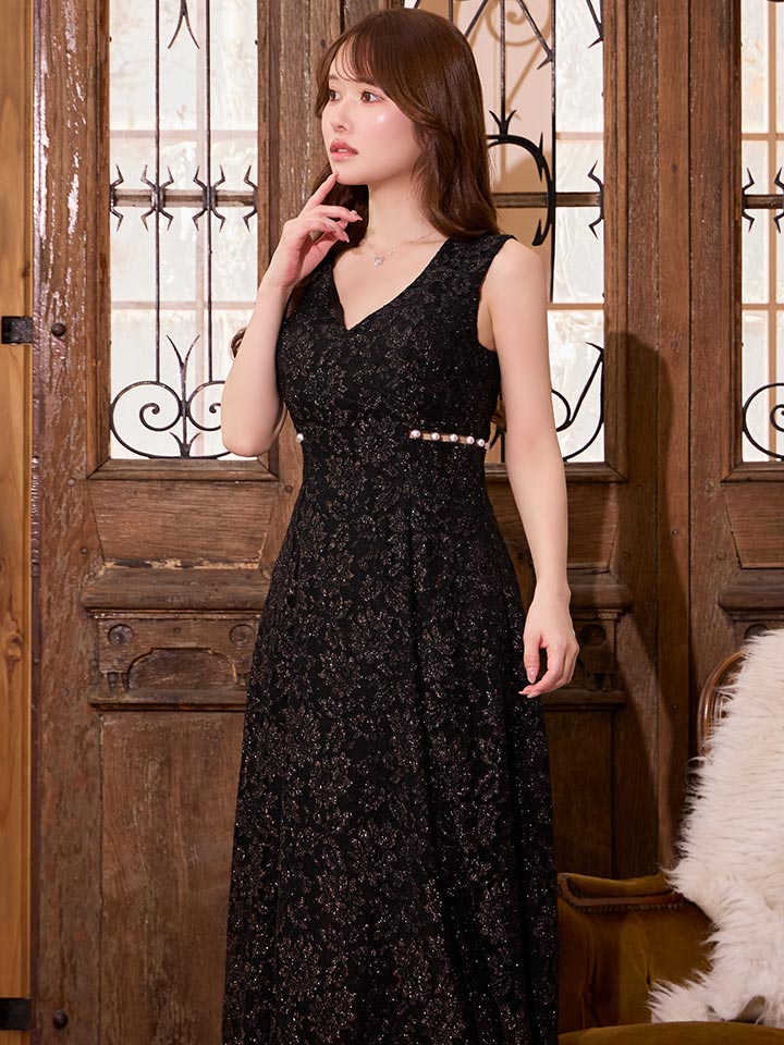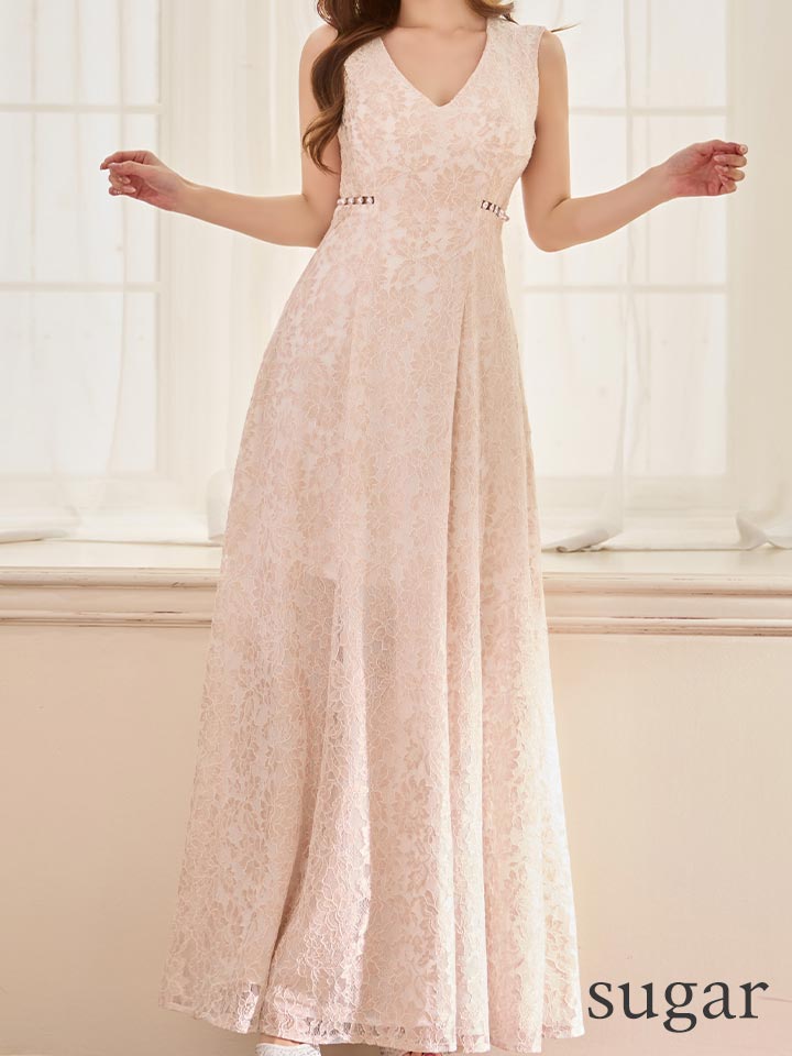 【VELIQUE/ヴェリーク】総レース/ ウエストカット/ パール/ ノースリーブ/ Vネック/ マキシ丈/ ワンピース/ ロングドレス/ キャバドレス【HC02】【一部予約商品/12月中旬発送予定】 [BYRS-235-B-S251129]