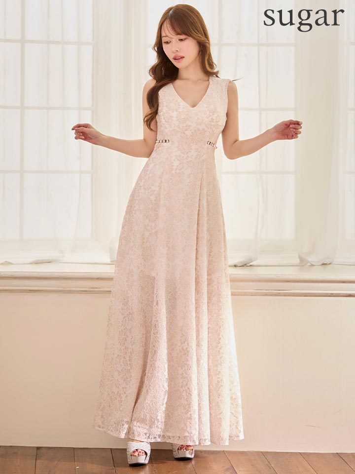 【VELIQUE/ヴェリーク】総レース/ ウエストカット/ パール/ ノースリーブ/ Vネック/ マキシ丈/ ワンピース/ ロングドレス/ キャバドレス【HC02】【一部予約商品/12月中旬発送予定】