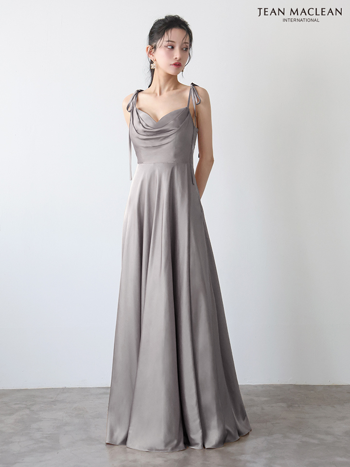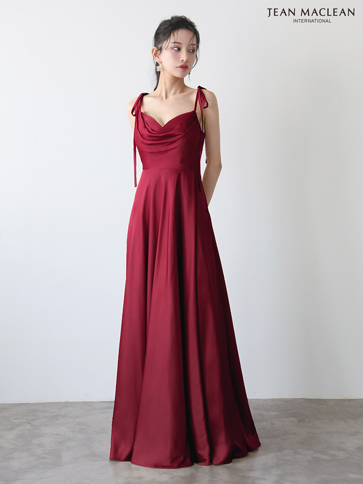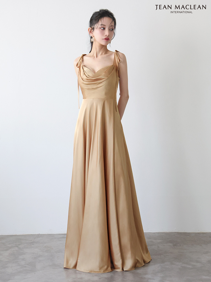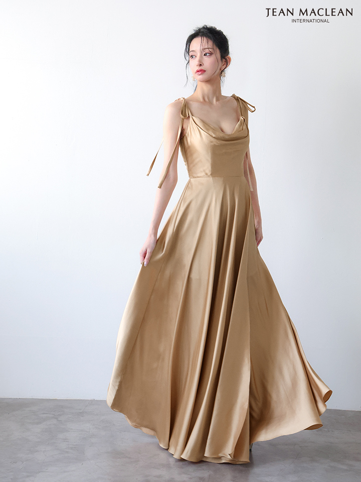 【JEAN MACLEAN/ジャンマクレーン】サテン/ ショルダーリボン/ キャミソール/ バストドレープ/ Aライン/ フレア/ ロングドレス/ キャバドレスlong[OF2A] [51975-JM-BGD-2511]