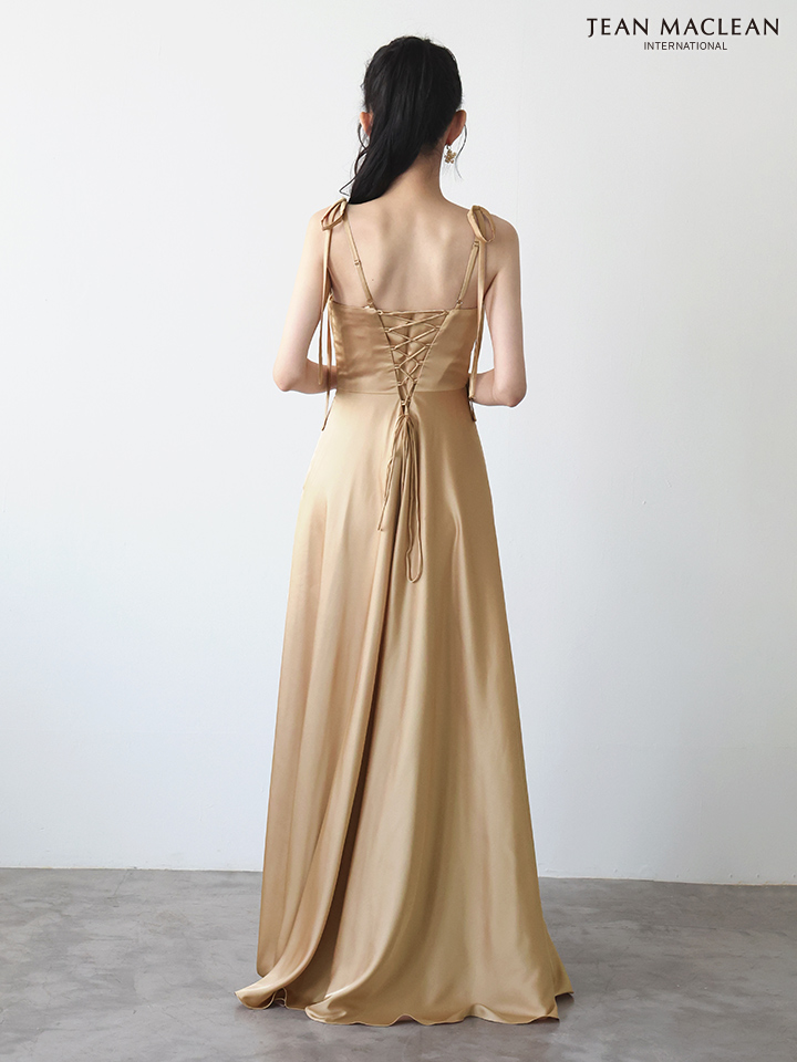 【JEAN MACLEAN/ジャンマクレーン】サテン/ ショルダーリボン/ キャミソール/ バストドレープ/ Aライン/ フレア/ ロングドレス/ キャバドレスlong[OF2A]