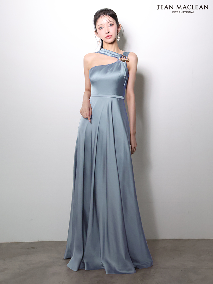 【JEAN MACLEAN/ジャンマクレーン】ワンショル/ ストール/ サテン/ フレア/ ロングドレス/ キャバドレスlong[OF2A]