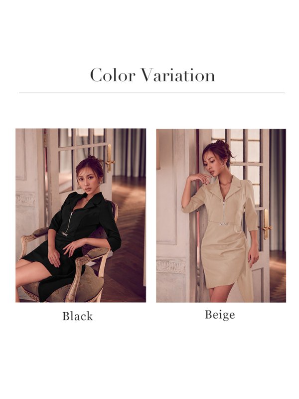 XSサイズあり【ANDY/アンディ】襟付き/ ワンカラー/ タック/ 七分袖/ 袖あり/ Vネック/ バストジップ/ タイト/ ミニドレス/ キャバドレス[OF05] [ON3023-BE-S251204]