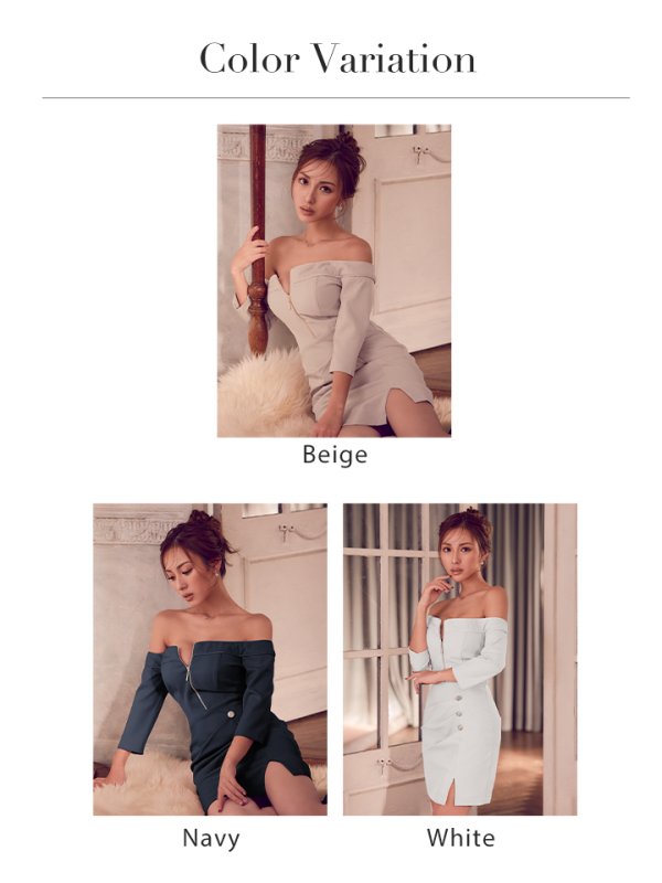 - > XSサイズあり【ANDY/アンディ】フロントジッパー/ ジッパー/ スリット/ オフショル/ タイト/ ミニドレス/ キャバドレス[OF05]