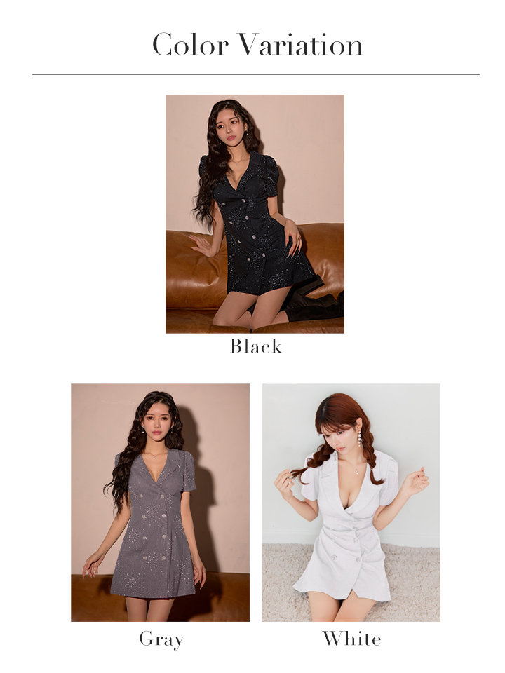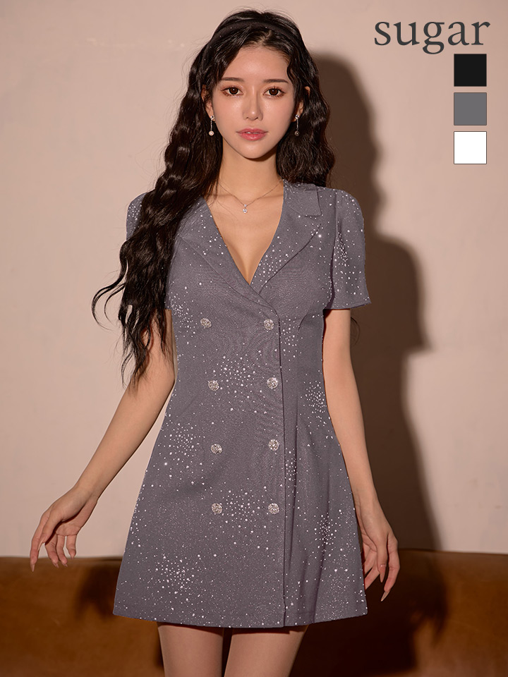 - > XSサイズあり【an /アン】ビジュー/ 襟付き/ ジャケット風/ ハーフスリーブ/ Vネック/ ダブルボタン/ フレア/ ミニドレス/ キャバドレス[OF05]