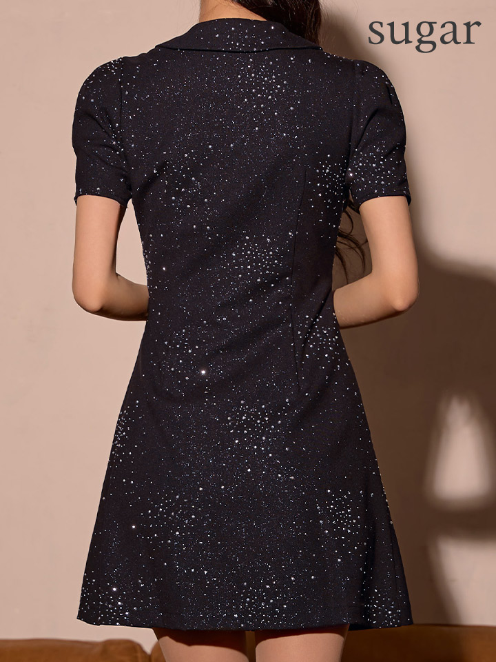 星空のように散りばめられたビジューが煌めきを放つフレアミニドレス♡
